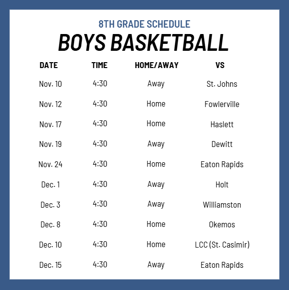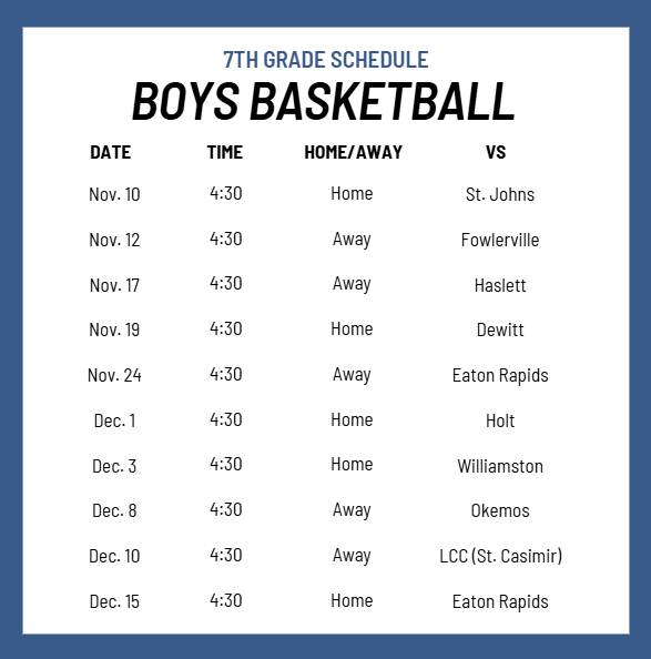 Come out and support the 7th and 8th grade Boys Basketball Teams.