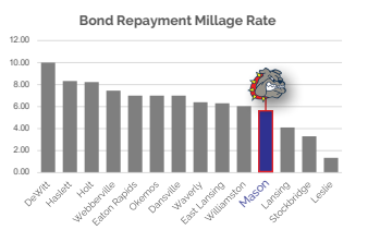 If passed, Mason Public Schools would continue to be one of the lowest millage rates in the area. Please refer to the chart below:
